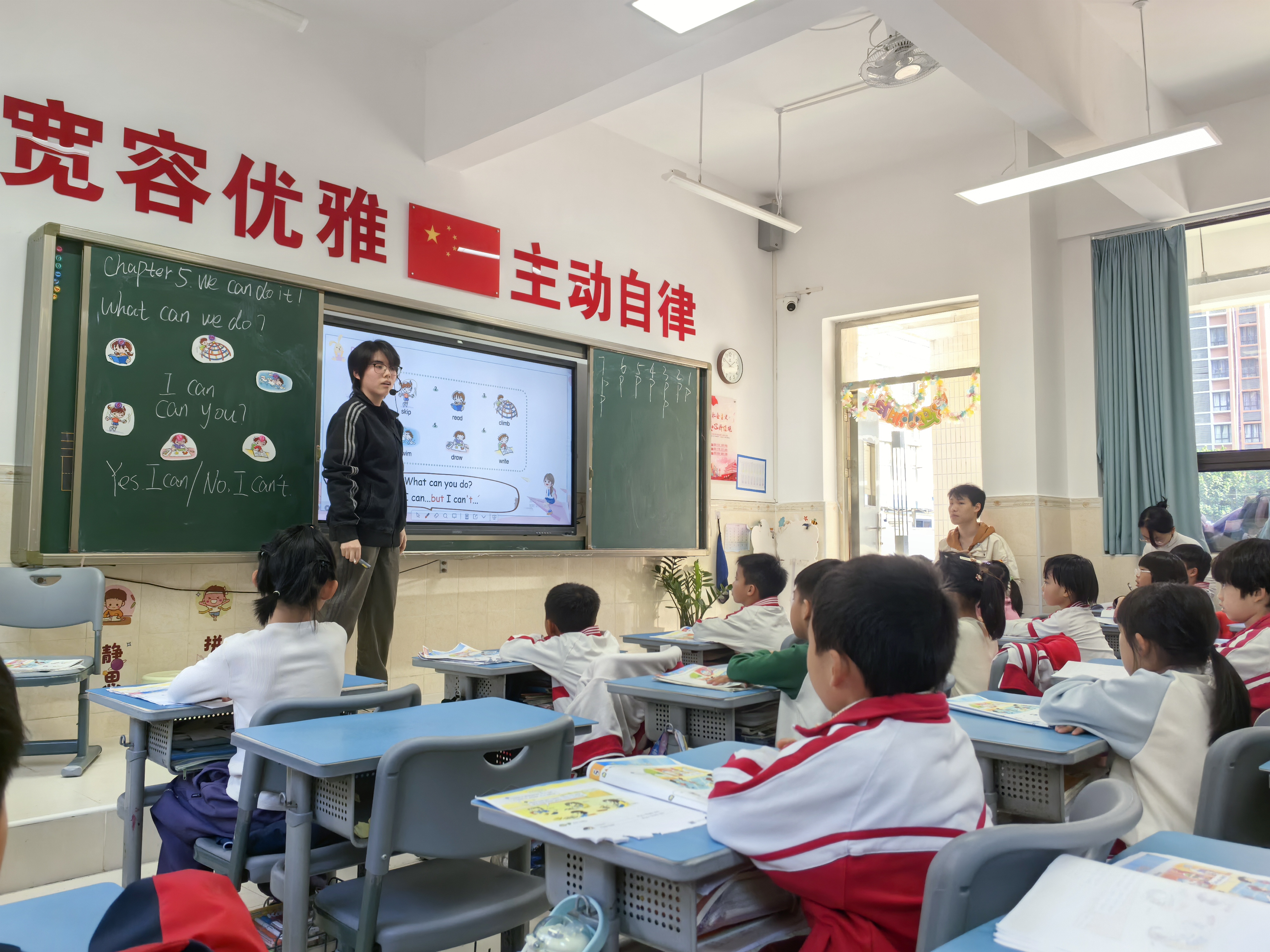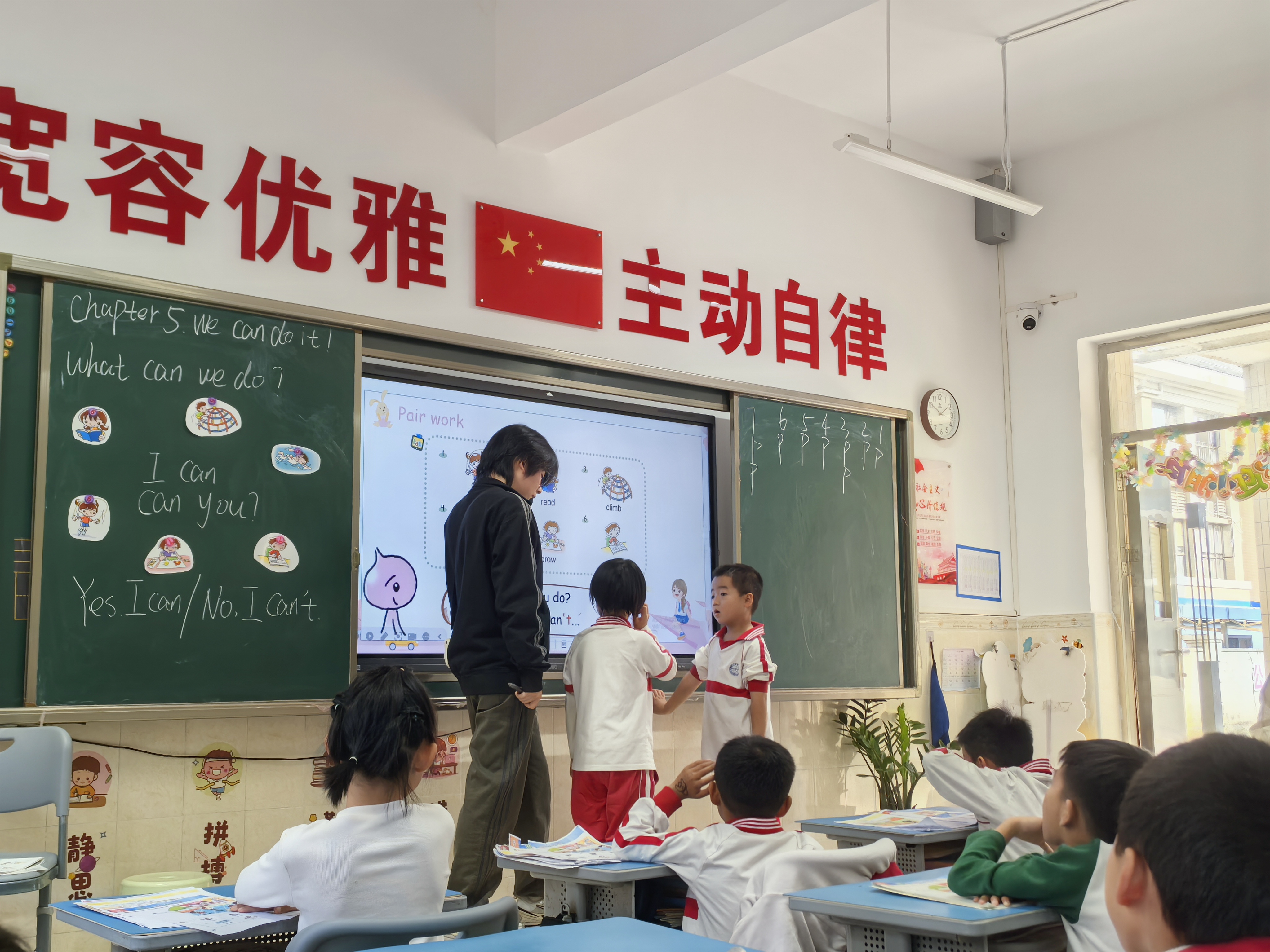 本周四下午,狄欣玉老师在一(3)班成功开展以 “Chapter 5 We can do it” 为主题的英语词汇新授课展示。本节课紧扣小学低年级学生认知特点,以 “校园趣味日俱乐部” 为核心情境,通过 “词汇 + 动作 + 句型” 的多元教学模式,实现了知识学习与实践运用的有机结合,充分践行了 “以生为本、学用结合” 的教学理念。