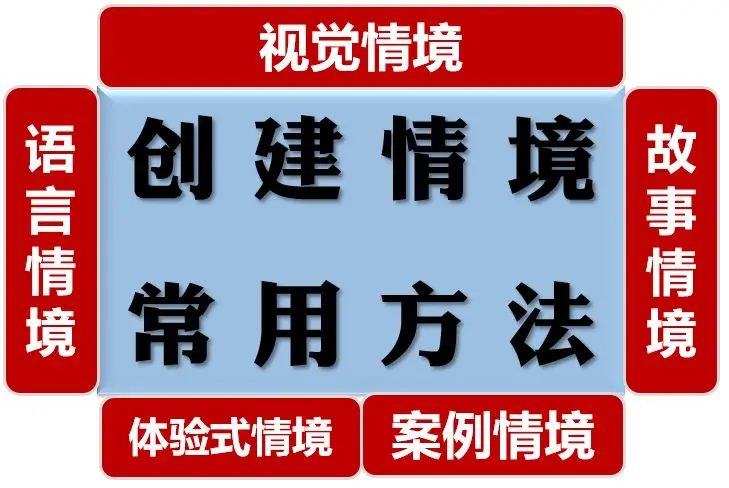 双重编码理论告诉我们:对语义(概念)的理解,是依赖于“情境”的——王珏老师称之为“语义情境化”。而视觉化,正是创建情境最直接、快速、有效的方法!正因为如此,所以老师讲解概念的最主要工作,就是“如何创建情境”!那么,又有几种最典型的情境创设方法呢?五大情境创设方法: