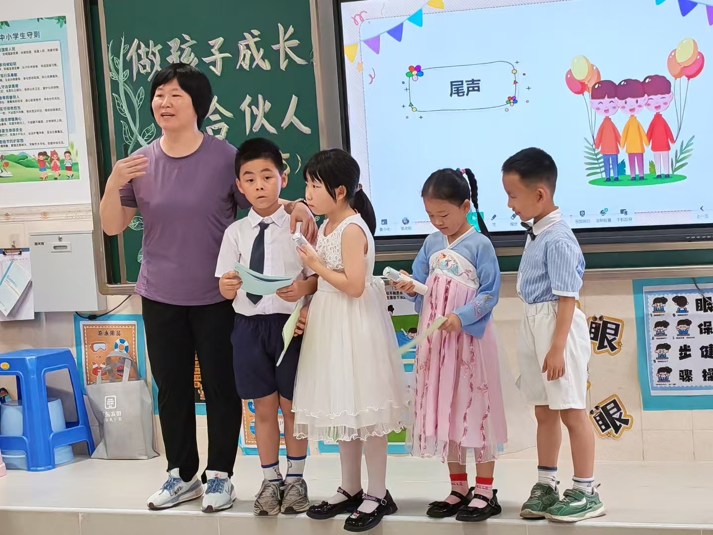 谢谢班主任郭老师语文老师李老师的信任,我家小朋友成为主持人之一。家长会前几天,我很担心小朋友说得不好,于是在家陪练了几回,可是,我觉得她不认真,好像没有把我的话放心上。而到了真正主持时,才发觉我的担心是多余的,她主持范味十足,节奏感强,表达清晰,该重读时重,不咬字不吃字,该有情感的地方还填进情感去,真是太棒了!另一个小女孩主持朱韵妃同学主持一样很不错,大大方方,淡定自如!四个主持形象实在太好,他们放射出柔和而强大的眼光给整场表演加了不少分!